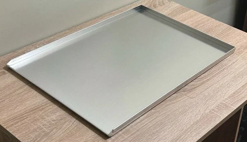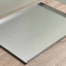 Уважаемые клиенты, наш раздел алюминиевых противней пополнился новинкой - гладким противнем стандартного размера 600*400 мм. Отличает его то, что один бортик расположен под углом 45 градусов, остальные борта - под углом 90 градусов.