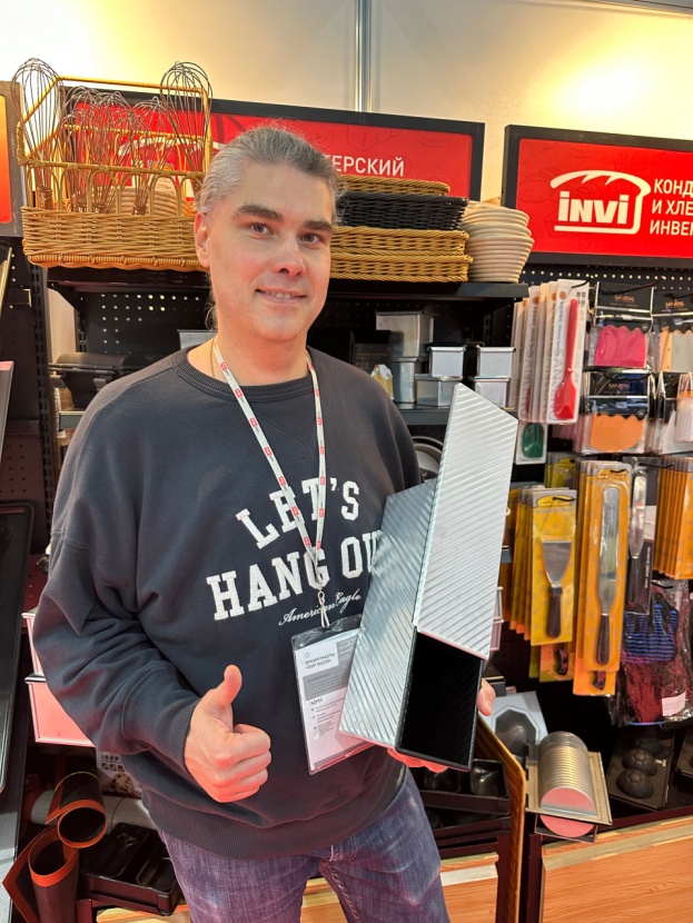 На стенде ИНВИ пекарь порадовалась новинкам - формам для приготовления штолленов, которые мы привезли как раз к ПИРУ. Штоллен - это традиционная немецкая рождественская выпечка из дрожжевого теста с сухофруктами, цукатами, орехами и пряностями. В планах у пекаря, предложить штоллены своим клиентам. А результатами отработок в наших формах, она обещает обязательно подлиться.